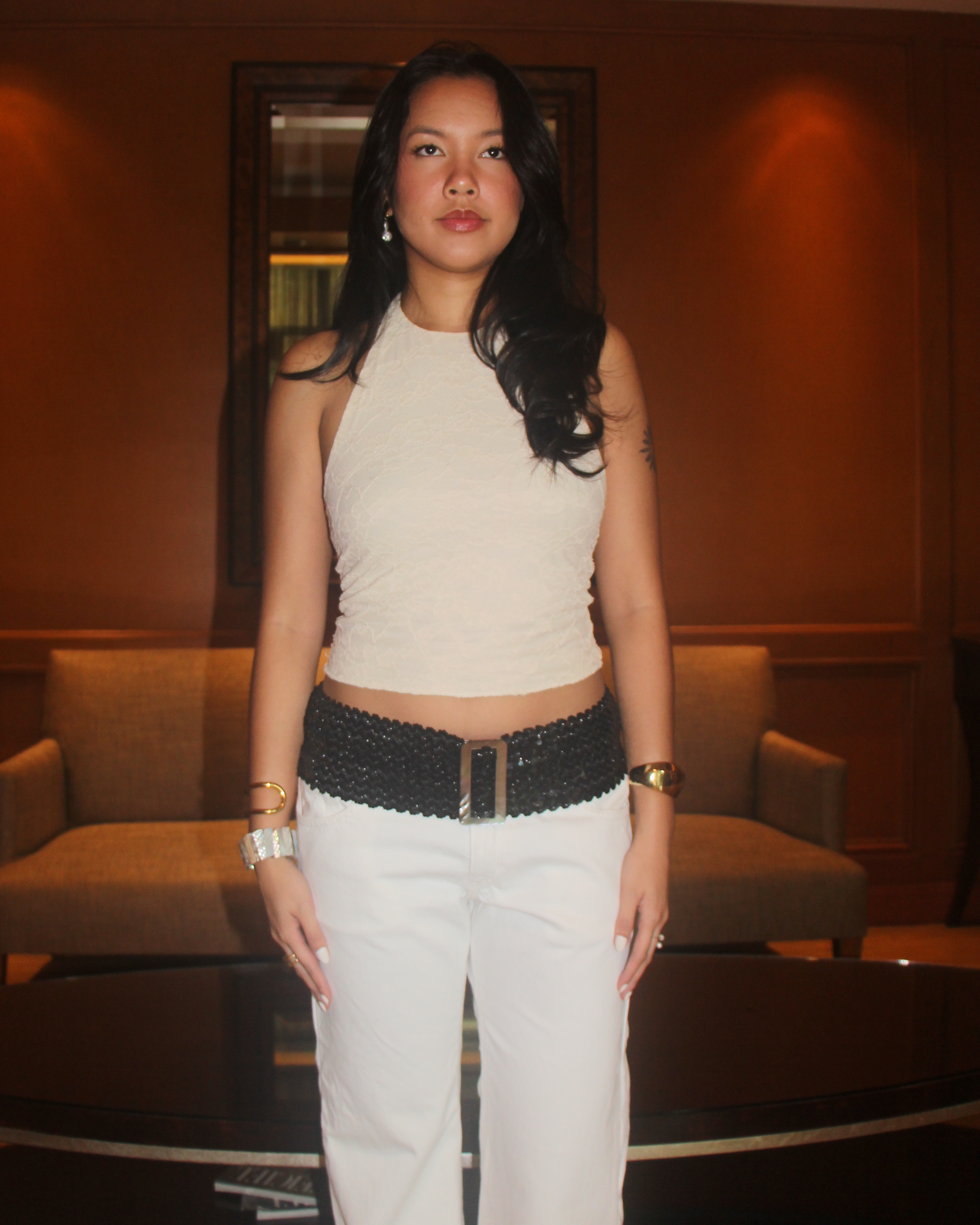 Our Scorpio Belt is 3" wide and fits a 26"- 32" waistline, featuring two rows of snap closures and stretch sequin for the perfect fit.